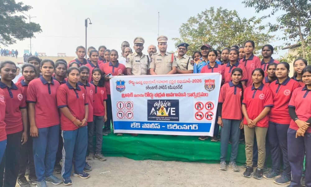 కరీంనగర్ లోని కరీంనగరంలోని మానేరు రివర్ ఫ్రంట్, లేక్ పోలీస్ అవుట్పోస్ట్ పరిధిలో రోడ్డు భద్రతపై అవగాహన కల్పించే ఉద్దేశంతో ‘అరైవ్ అలైవ్ కార్యక్రమాన్ని గురువారం ఘనంగా నిర్వహించారు. ఈ కార్యక్రమానికి ముఖ్య అతిథులుగా కరీంనగర్ టౌన్ ఏసీపీ వెంకటస్వామి , వన్ టౌన్ ఇన్స్పెక్టర్ రాంచందర్ రావు హాజరయ్యారు. ఈ సందర్భంగా డ్యామ్ పరిసర ప్రాంతాల్లో వాకర్స్ మరియు విద్యార్థులతో కలిసి భారీ అవగాహన ర్యాలీ నిర్వహించారు. ఏసీపీ వెంకటస్వామి మాట్లాడుతూ రోడ్డు ప్రమాదాల నివారణకు ప్రతి ఒక్కరూ ట్రాఫిక్ నిబంధనలను విధిగా పాటించాలని సూచించారు. ద్విచక్ర వాహనదారులు తప్పనిసరిగా హెల్మెట్, కార్లలో ప్రయాణించే వారు సీట్ బెల్ట్ ధరించాలన్నారు. బైక్లపై ముగ్గురు ప్రయాణించడం చట్టవిరుద్ధం మరియు ప్రమాదకరం అన్నారు. మద్యం సేవించి వాహనం నడపడం , మద్యం మత్తులో వాహనాలు నడిపి ప్రాణాల మీదకు తెచ్చుకోవద్దని, ఇతరుల ప్రాణాలకు నష్టం కలిగించకూడదన్నారు. వయసు నిండని పిల్లలకు వాహనాలు ఇవ్వకూడదని తెలిపారు. మితిమీరిన వేగం ప్రమాదాలకు ప్రధాన కారణం, కావున వేగ నియంత్రణ పాటించాలన్నారు. అనంతరం, రోడ్డు నిబంధనలను పాటిస్తామని, తోటి వారికి అవగాహన కల్పిస్తామని, ప్రమాదాల రహిత సమాజం కోసం కృషి చేస్తామని విద్యార్థులు మరియు వాకర్స్తో అధికారులు ప్రమాణం చేయించారు. ఈ కార్యక్రమంలో వన్ టౌన్ ఇన్స్పెక్టర్ రాంచందర్ రావు, లేక్ పోలీస్ అవుట్పోస్ట్ ఆర్.ఎస్.ఐ (RSI) రమేష్, ఇతర పోలీస్ సిబ్బంది మరియు పెద్ద సంఖ్యలో ప్రజలు పాల్గొన్నారు.