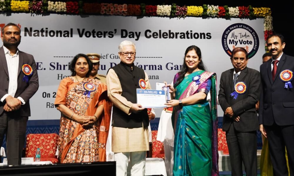 జాతీయ ఓటర్ల దినోత్సవాన్ని పురస్కరించుకుని రాష్ట్ర స్థాయి వేడుకల్లో కరీంనగర్ జిల్లాకు మరో విశిష్ట గౌరవం దక్కింది. ఎన్నికల నిర్వహణలో వినూత్న ఓటర్ల అవగాహన కార్యక్రమాలు, శిక్షణ, సామర్థ్యాభివృద్ధి రంగంలో చేసిన ఉత్తమ కృషికి గాను కరీంనగర్ కలెక్టర్ పమేలా సత్పతి రాష్ట్ర స్థాయి అవార్డుకు ఎంపికయ్యారు. హైదరాబాద్లో రాష్ట్ర స్థాయి కార్యక్రమంలో తెలంగాణ రాష్ట్ర గవర్నర్ జిష్ణు దేవ్ వర్మ చేతుల మీదుగా ఈ అవార్డును కలెక్టర్ స్వీకరించారు. కలెక్టర్ దిశా నిర్దేశంలో ఎన్నికల ప్రక్రియలో కీలక పాత్ర వహించే ఎన్నికల అధికారులు, సహాయక అధికారులు, పోలింగ్ సిబ్బంది, పరిశీలకులకు శిక్షణ కార్యక్రమాలు నిర్వహించారు. ఎన్నికల నిబంధనలు, విధివిధానాలపై స్పష్టమైన అవగాహన కల్పించడం, సిబ్బంది నైపుణ్యాలను మెరుగుపరచడం, పారదర్శకతతో ఎన్నికలు నిర్వహించేలా చర్యలు చేపట్టడం ఈ అవార్డుకు ప్రధాన కారణంగా నిలిచాయి. అలాగే, వినూత్న ఓటర్ల అవగాహన కార్యక్రమాలను సమర్థవంతంగా అమలు చేయడం ద్వారా ప్రజాస్వామ్యంపై ప్రజల్లో నమ్మకం పెంపొందించడంలో జిల్లా ఎన్నికల యంత్రాంగం విశేషంగా కృషి చేసింది.ఈ సందర్భంగా కలెక్టర్ పమేలా సత్పతి మాట్లాడుతూ, “జిల్లా యంత్రాంగం, ఎన్నికల అధికారులు, సిబ్బంది అందరి సమష్టి కృషి వల్లే ఈ అవార్డు సాధ్యమైంది” అని తెలిపారు. ఎన్నికల నిర్వహణలో భాగస్వాములైన ప్రతి ఒక్క అధికారికి అభినందనలు తెలిపారు. ఈ అవార్డు జిల్లా ఎన్నికల యంత్రాంగం ప్రజాస్వామ్య విలువలకు కట్టుబడి, సుశిక్షిత సిబ్బందితో నిష్పక్షపాతంగా ఎన్నికలు నిర్వహించగల సామర్థ్యాన్ని ప్రతిబింబిస్తోందని అధికారులు తమ సంతోషాన్ని వ్యక్తం చేశారు.