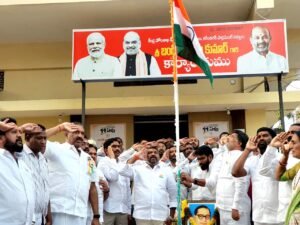కరీంనగర్ పార్లమెంటు కార్యాలయం వద్ద జాతీయ పతాకాన్ని ఎగరవేసినబీజేపీ జిల్లా అధ్యక్షులు గంగాడి కృష్ణారెడ్డి…