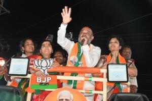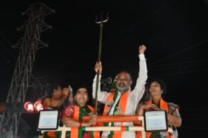 కరీంనగర్ మేయర్ పీఠాన్ని బీజేపీకి అప్పగించండి. ఇంటి పన్నులు పెంచకుండా, నల్లా ఛార్జీలు పెంచకుండా కేంద్రం నుండి నిధులు తీసుకొచ్చి కరీంనగర్ ను అన్ని రకాలుగా అభివ్రుద్ధి చేస్తా… దయచేసి అభివ్రుద్ధిని మధ్యలో ఆగకుండా ఉండాలంటే బీజేపీని గెలిపించాలని కోరుతున్నా.