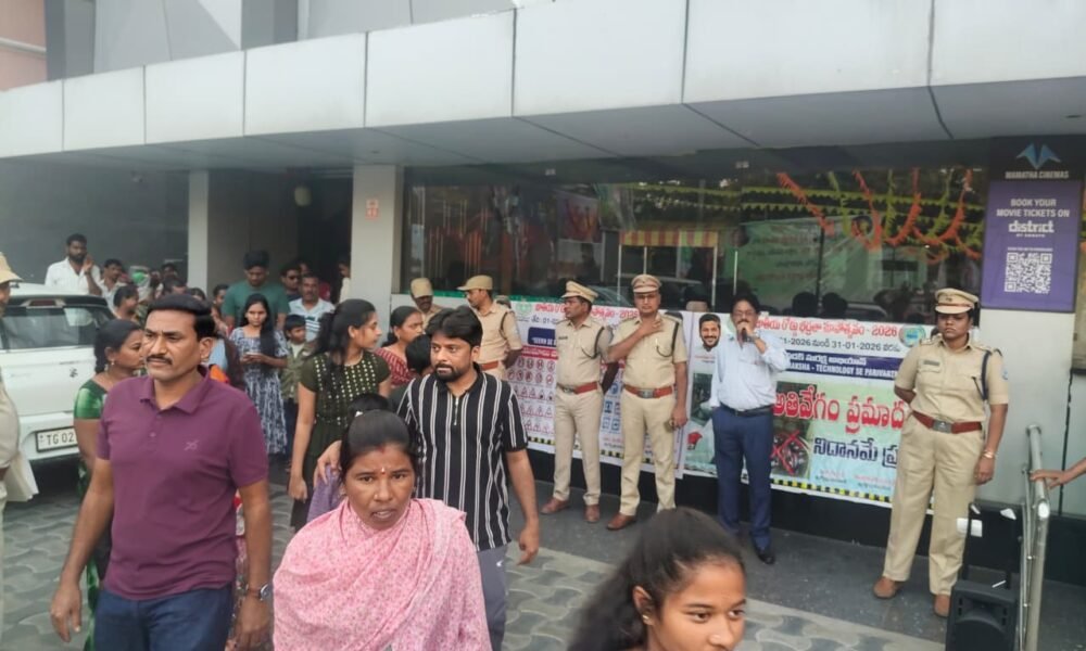 జాతీయ రహదారి భద్రత మాసోత్సవాలు 2026 క్యాలెండర్ 16 వ రోజు కార్యక్రమం లో భాగం గా జిల్లా రవాణాశాఖ డి.టి.సి పి.పురుషోత్తం గారి ఆదేశాల మేరకు డి.టీ.ఓ శ్రీకాంత్ చక్ర వర్తి నేతృత్వం లో సినిమా థియేటర్ల లోపల రీల్స్ ,స్లైడ్స్, వీడియో క్లిప్పింగ్ ల ద్వార ట్రాఫిక్ నియమాల అమలు, రహదారి ప్రమాదాల నివారణ చర్యలు,రోడ్డు భద్రత కు సంబంధించిన అవగాహన కార్యక్రమాల ను నిర్వహించే క్రమంలో కరీం నగర్ పట్టణం లోని మమత థియేటర్ ను సందర్శించారు. థియేటర్ లో నడుస్తున్న మన శంకర వర ప్రసాద్ సినిమా మ్యాట్నీ షో విడుదలైన తర్వాత ఆ సినిమా చూసిన వీక్షకులతో పాటు ఫస్ట్ షో చూడడానికి వచ్చిన ప్రేక్షకుల ను ఉద్దేశించి డి.టి.ఓ శ్రీకాంత్ చక్ర వర్తి మాట్లాడుతూ మానవ జీవనం లో అత్యంత ఉత్సాహాన్ని కలిగించి వారి దినచర్య ల పట్ల కార్యోన్ముఖులను చేసే బలమైన సాధన మైన వినోదాన్ని పంచే సినిమాల లో హీరోలు చేసే ఫీట్లను యధాతథం గా ప్రాక్టీస్ చేస్తూ ప్రమాదాల బారిన పడరాదనీ, వివిధ వాహనాల లో రహదారుల పై ప్రయాణం చేసేటప్పుడు ట్రాఫిక్ నియమాల ను త్రికరణ శుద్ధి గా పాటించాలని హెల్మెట్ లేకుండ ద్విచక్ర వాహనాల ను ,సీట్ బెల్ట్ ధరించకుండా కార్లు తదితర ఫోర్ వీలర్లను నడపరాదని,అదే విధం గా మద్యం సేవించి గానీ , నిద్ర మత్తు లో గాని ,అలసట గా ఉన్నప్పుడు గానీ వాహనాల ను నడుపుతూ ప్రమాదాల ను కొని తెచ్చుకోరాదని హితవు పలికారు. రక్షణ రోడ్ సేఫ్టీ ఫౌండేషన్ కో ఆర్డినేటర్ డాక్టర్ నీలం సంపత్ మాట్లాడుతూ దేశం లో, రాష్ట్రం లో 37 వ జాతీయ రోడ్డు భద్రత మాసోత్సవాల క్యాలెండర్ లో 16 వ రోజు కార్యక్రమం లో వినోదం కోసం సినిమాలు చూడడానికి వెళ్లే వారికి ,పబ్లిక్ ప్రదేశాల లో సంచరించే వారికి రహదారి భద్రత పై అవగాహన కల్పించే క్రమంలో స్థానిక మమత థియేటర్ లో సినిమాను చూడడానికి వచ్చిన ప్రేక్షకుల ను కలవడం జరిగిందని, థియేటర్లో సినిమా చూడడానికి వచ్చిన మీరంతా భద్రత తో మీమీ ఇండ్ల ను చేరుకుని థియేటర్లో మీరు పొందిన సంతోషాన్ని మీకిష్టమైన కుటుంబ సభ్యుల తో పంచుకోవాలంటే మీరంతా రహదారి భద్రత నియమాల ను పాటించాలని చెప్పారు. ఓ వైపు మోర్త్ మరో వైపు మన రాష్ట్ర రవాణాశాఖ ఎంతో అంకిత భావం తో ఈ మాసోత్సవాల ను నిర్వహిస్తున్న నేఫథ్యం లో కరీం నగర్ జిల్లా రవాణాశాఖ పట్టణ రహదారుల ను ప్రమాదాల రహిత రహదారులు గా మార్చడానికి కృషిచేస్తుందని చెప్పారు. ఈ అవగాహన కార్యక్రమం లో యమ్. వి.ఐ రవి కుమార్ , ఏ. యమ్.వి.ఐ స్రవంతి తో పాటు రవాణాశాఖ సిబ్భంది పాల్గొన్నారు.